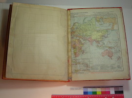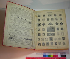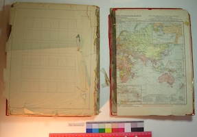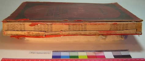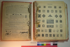 frimerkealbum som hadde stifter og teip... sydd på nytt og reparert med Moriki